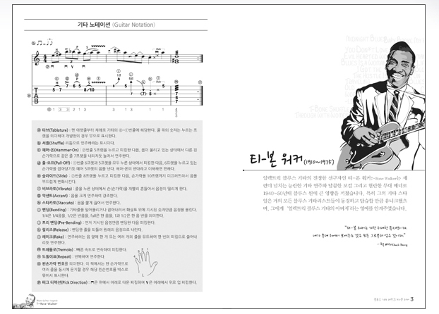 이 책은 일렉트릭 블루스 기타의 아버지라 불리는 티-본 워커(T-Bone Walker)의 연주 스타일을 꼼꼼하게 분석하여 가르쳐줍니다. 깔끔하고 멋진 디자인의 포켓북에는 엄선된 60가지의 릭과 이를 응용연습할 수 있는 4곡의 솔로 예제가 수록되어 있습니다. 또 69트랙에 달하는 오디오 CD에는 모든 예제에 대한 모범 연주가 담겨 있으며, 책의 마지막에는 부록으로 타브 악보(T-Bone Shuffle)가 실려 있습니다. 블루스 기타 솔로의 초석을 놓았던 인물들 중 한 사람인 티-본 워커를 공부하는 것은 여러 모로 유익한 일임에 틀림이 없습니다. 크기는 작지만 결코 가볍지 않은 이 책이 여러분을 흥미진진한 티-본 워커의 블루스 세계로 안내할 것입니다.